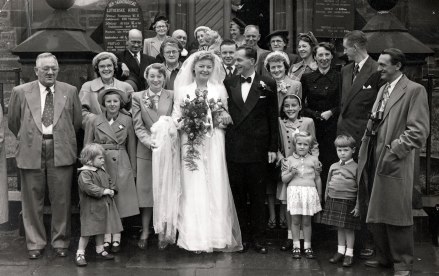 Slik skildret sjømannsprest Arne Kaare Torgersen blomsterpryden i kirken den dagen. Fotograferingen ute på gaten etter vielsen ble en stor begivenhet. De som bodde i North Junction street bøyde seg ut av vinduene og så og så – bryllup på en søndag var en sjeldenhet i Skottland. Etterpå ble blomstene flyttet inn på leseværelset, der det ble kaffefest og blomsterfest og bryllupsfest, selv om brudeparet og brudefølget hadde fortsatt feiringen et annet sted.
