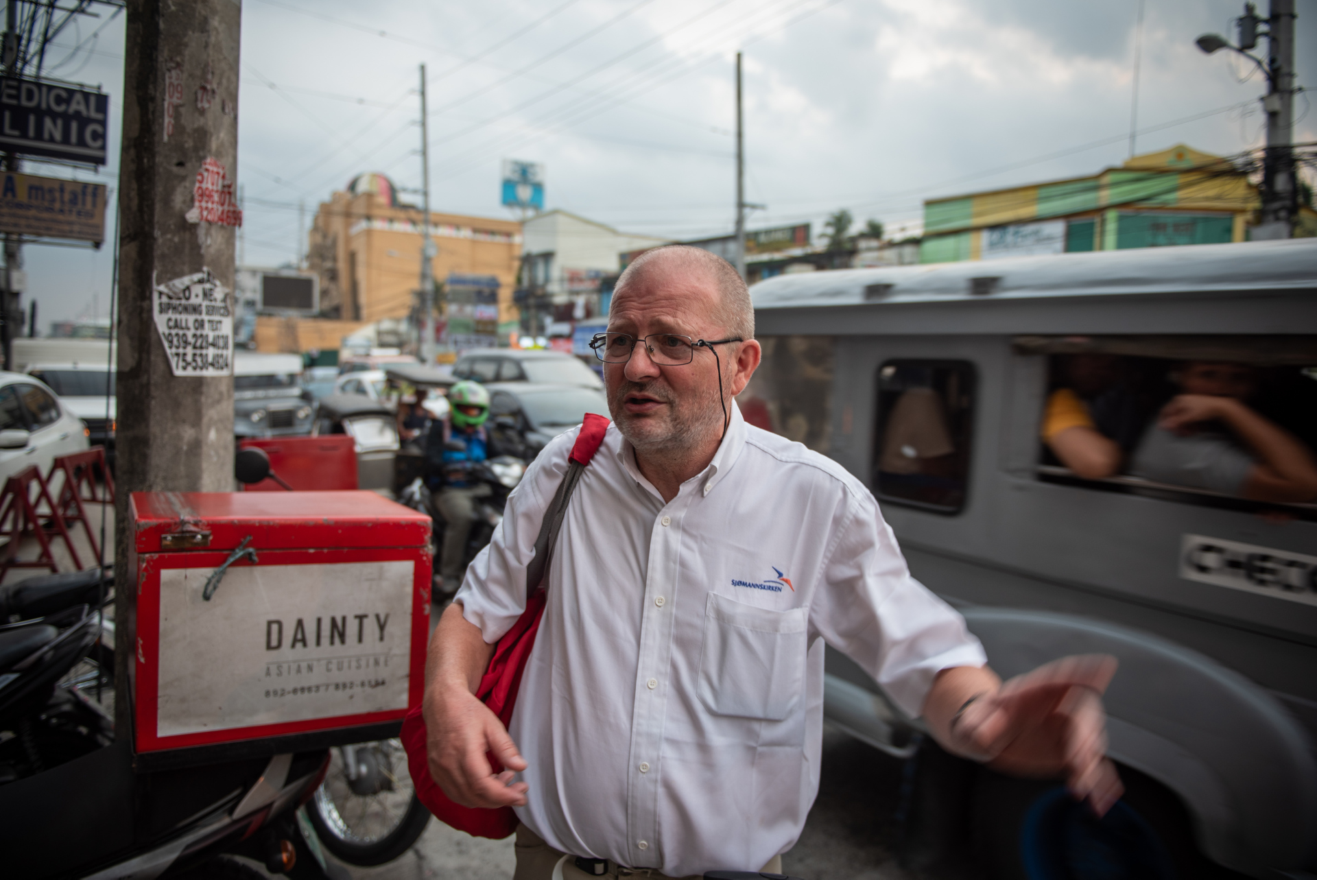 – Å være sjømannsprest her på Filippinene er som å kjøre en sosial ekspressheis. Den ene dagen er jeg på fengselsbesøk eller leter etter folk som lever på gaten. Den neste dagen besøker jeg forretningsfolk i Manila, sier han på vei inn i en påkostet skyskraper.