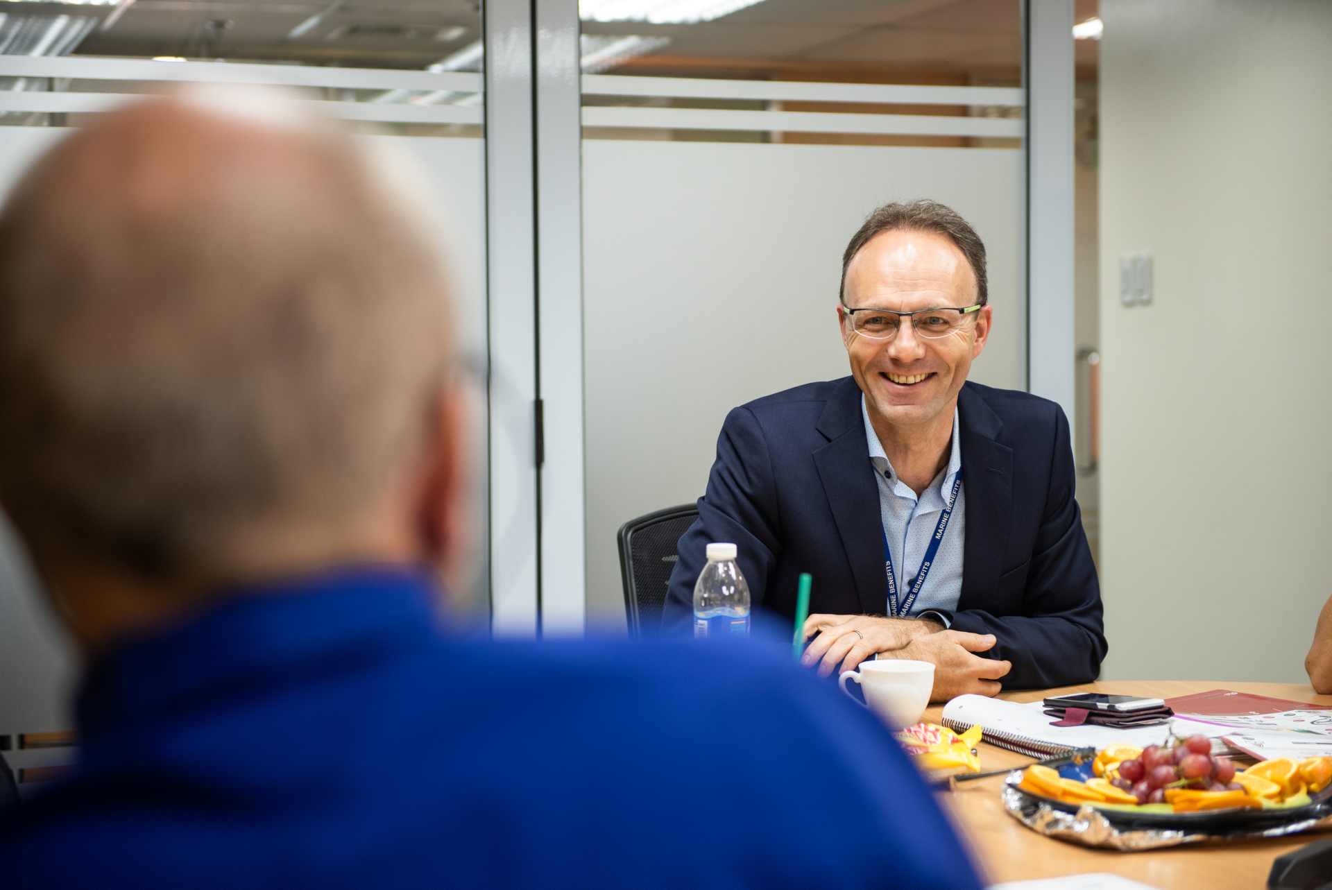 I en av de øverste etasjene tar Jøran Nøstvik (55) ham imot. Han er direktør for maritime operasjoner i selskapet Abo- Jeb, og har ansvar for å bemanne 500 skip med sjøfolk. Alle filippinere.