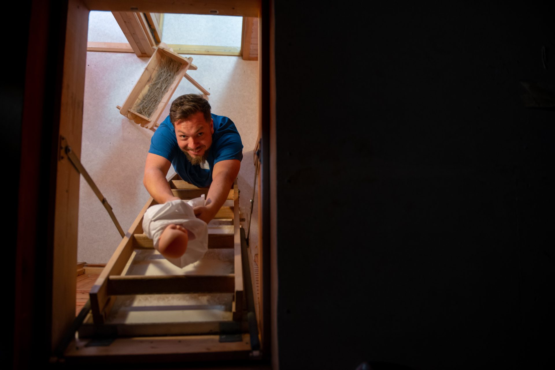 – Jesus er i høyeste grad til stede i det daglig også, ikke bare i desember, forsikrer Erik idet den lille dukka i krybba forsiktig løftes ned gjennom loftsluken. For selv om det fortsatt er noen uker til jula ringes inn, er det godt å vite at hovedpersonen i juleevangeliet er på plass.