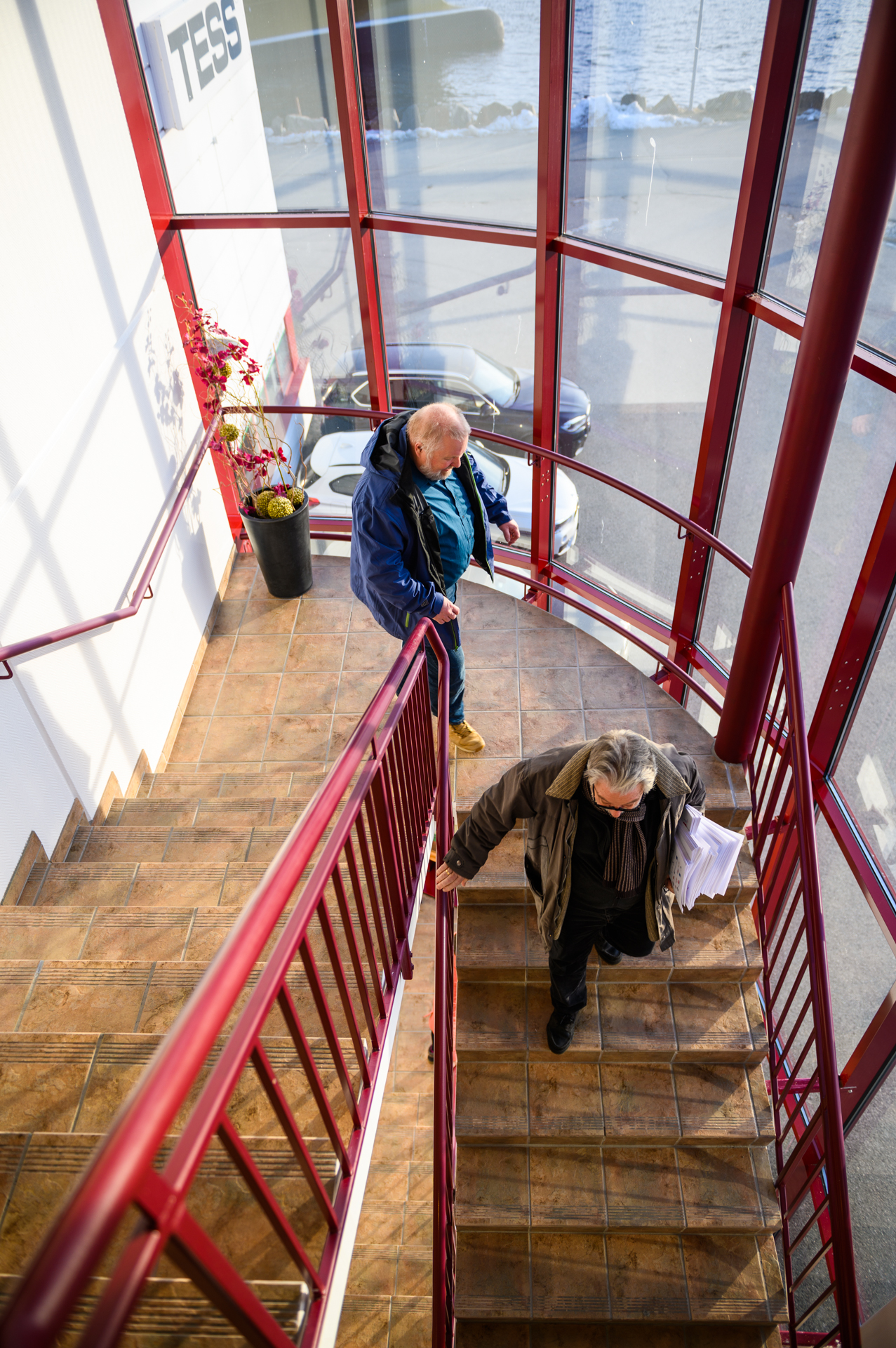 Ole Dagfinn Sky og Frank Skofteland på vei inn til Havilas kontorer.