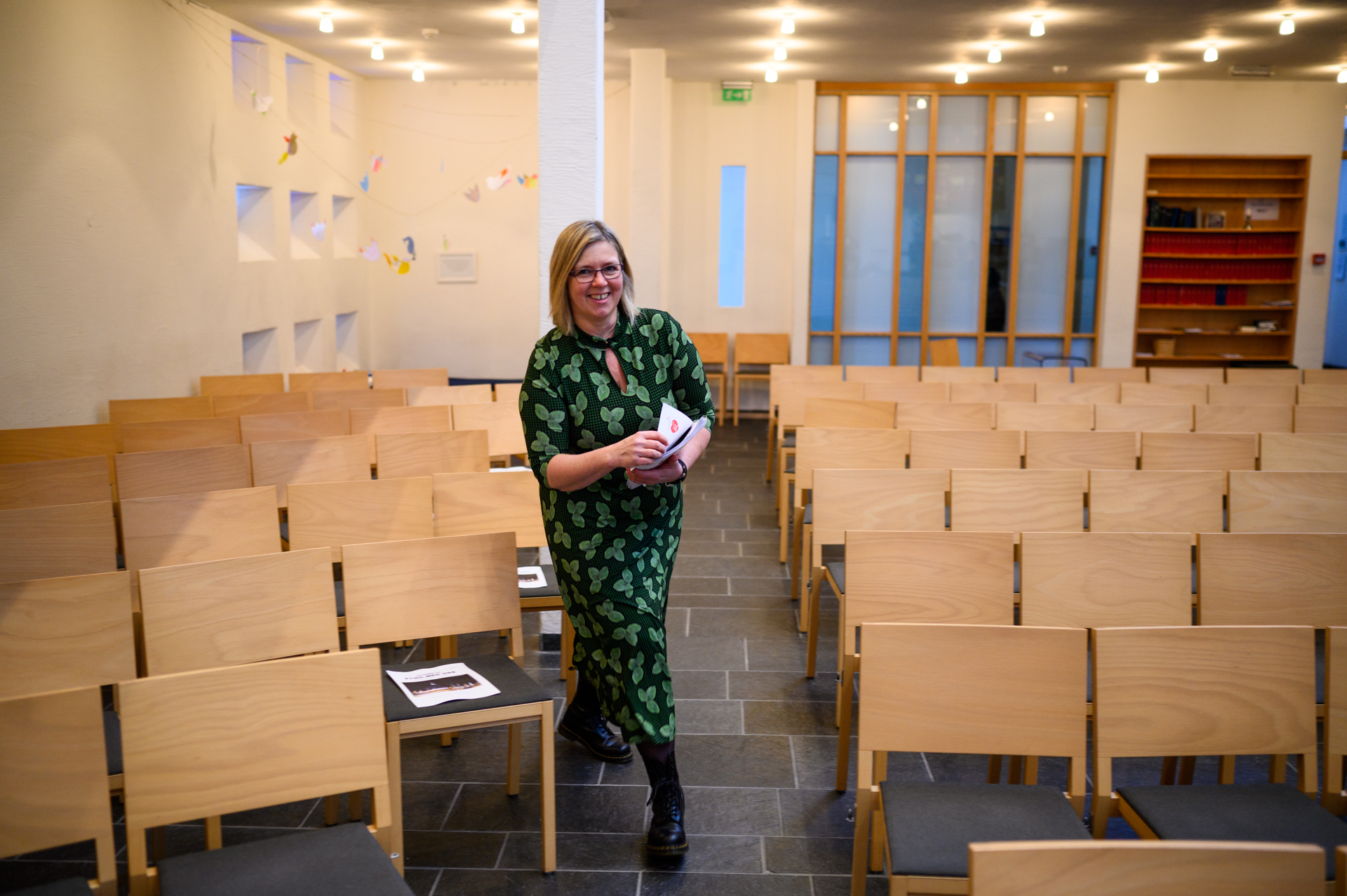 – Jeg er stolt og ydmyk over at jeg jobber i en organisasjon som blir så godt mottatt så mange steder. Når jeg møter ansiktene til de jeg har snakket med i telefonen, er det noen barrierer som brytes, sier Stenholt mens hun deler ut sanghefter i kirken.