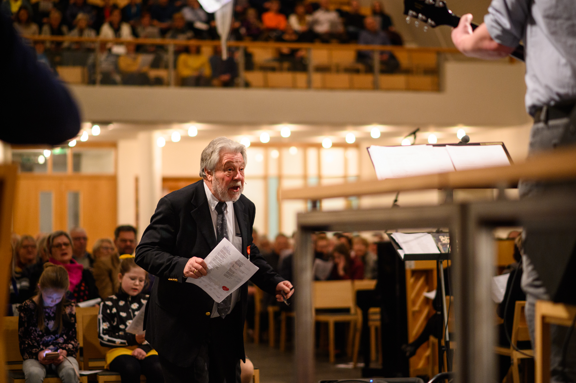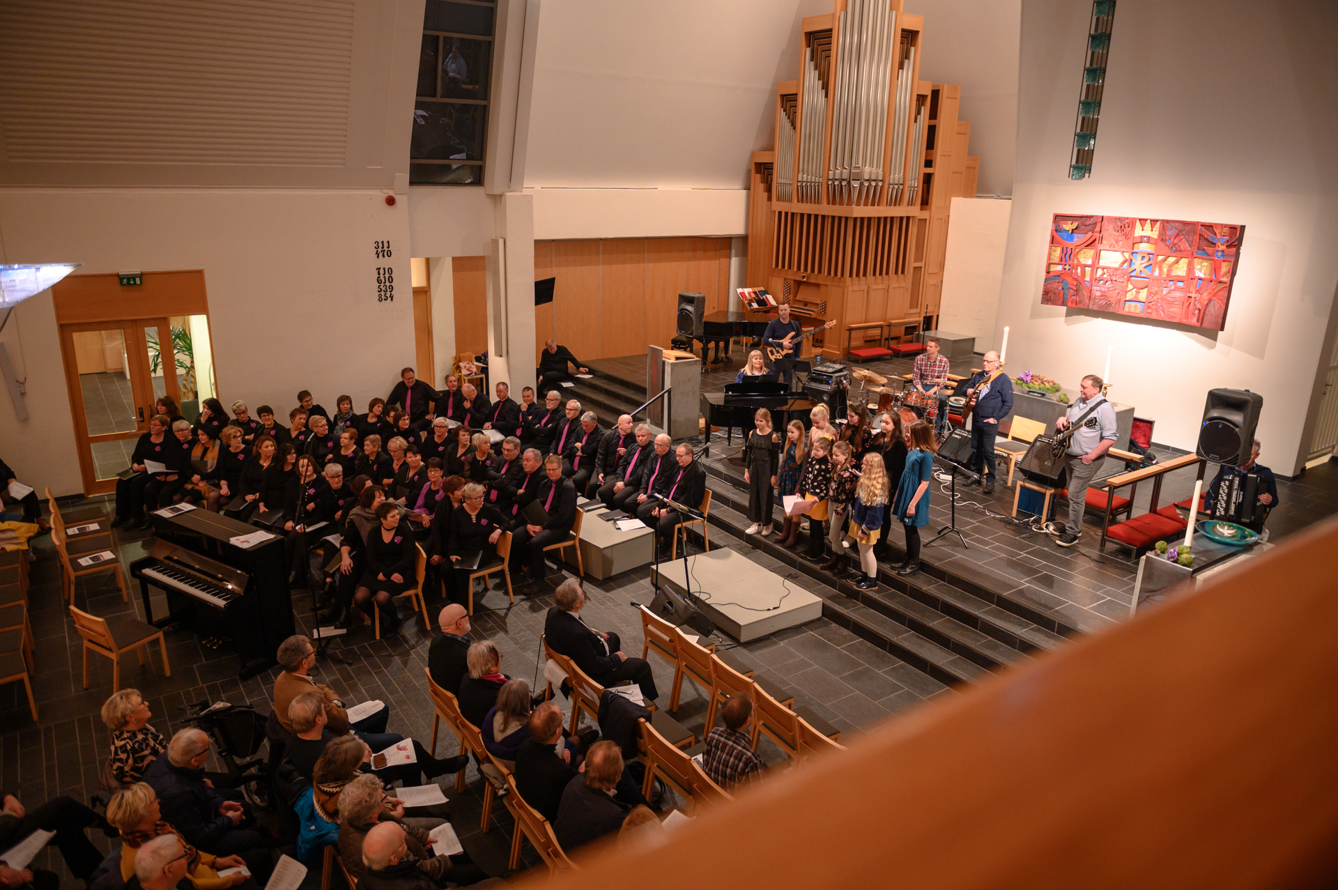 SANG OG SAMHOLD. Det har blitt søndag ettermiddag. Snart åpner dørene for «Syng med oss» i Herøy kirke. Dette er fjortende gangen sangkvelden arrangeres takket være generøs økonomisk støtte fra rederiene i området, samt iherdig dugnadsinnsats fra mange i lokalsamfunnet.