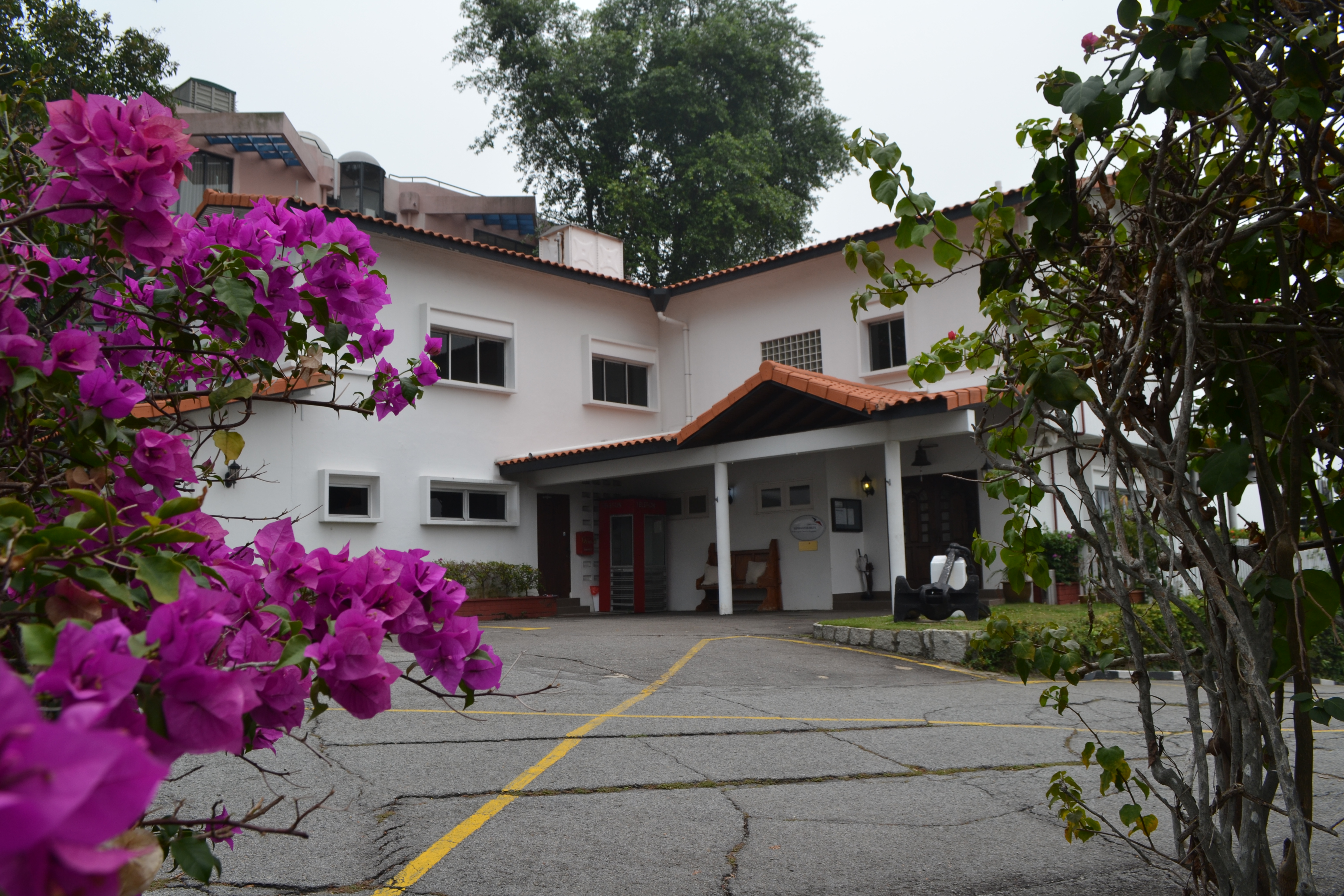 Sjømannsprest Kristian Kvalem poserer foran «den norske kroken» utenfor Sjømannskirken i Singapore. Foto: Øystein Tønnessen