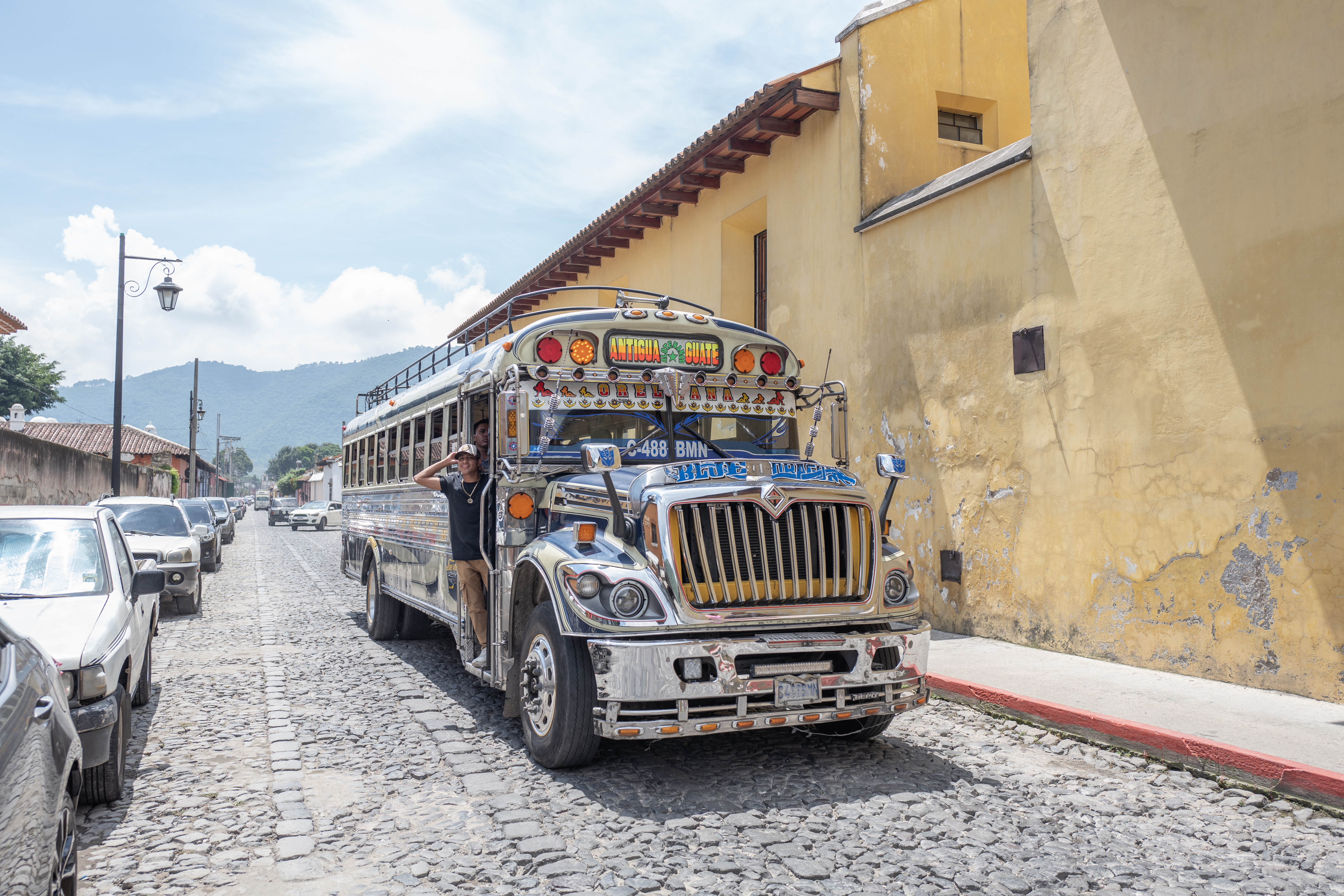 Anne Netland setter seg inn i en såkalt «chicken bus» med blinkende lys og høy musikk. En billettør fyller rutebussen til randen før sjåføren vender snuten mot Guatemalas høye fjell.