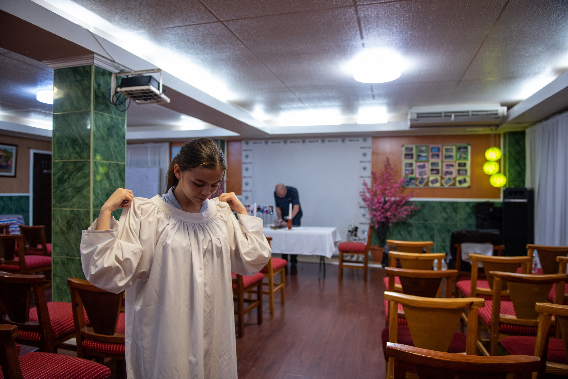 Kledd i en hvit kappe og med et mildt smil om munnen, står 14 år gamle Sofia Hansen fremme ved alteret. På et feriesenter på den filippinske øya Cebu skal hun snart hjelpe ambulerende sjømannsprest Stein Vangen med nattverden. For de fleste av de rundt 20 nordmennene i det provisoriske kirkelokalet, er den hellige seremonien en helt naturlig del av gudstjenesten. Det var den ikke for syv år siden. Takket være Sofia ble det da dekket nattverdbord for nordmenn i Cordova-området for aller første gang.