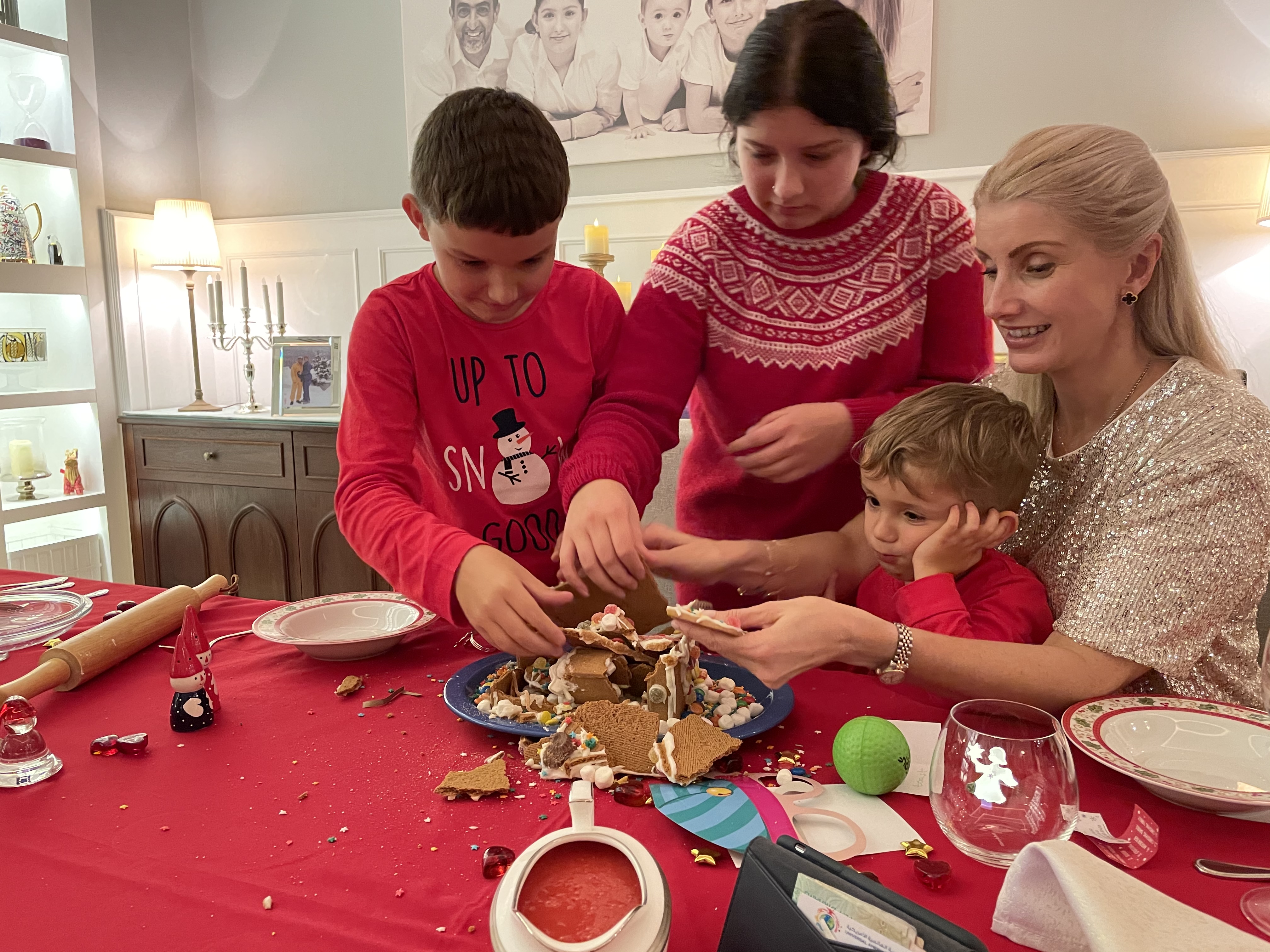 Selv er hun kristen og har tatt med sine juletradisjoner inn i familien. Hvert år henter de frem juletrær, pynt, juleputer og duker. Sammen har familien også laget en julelandsby som står til pynt i huset. Den vokser hvert år, etter hvert som store og små kommer hjem med flere figurer, forteller trebarnsmoren.