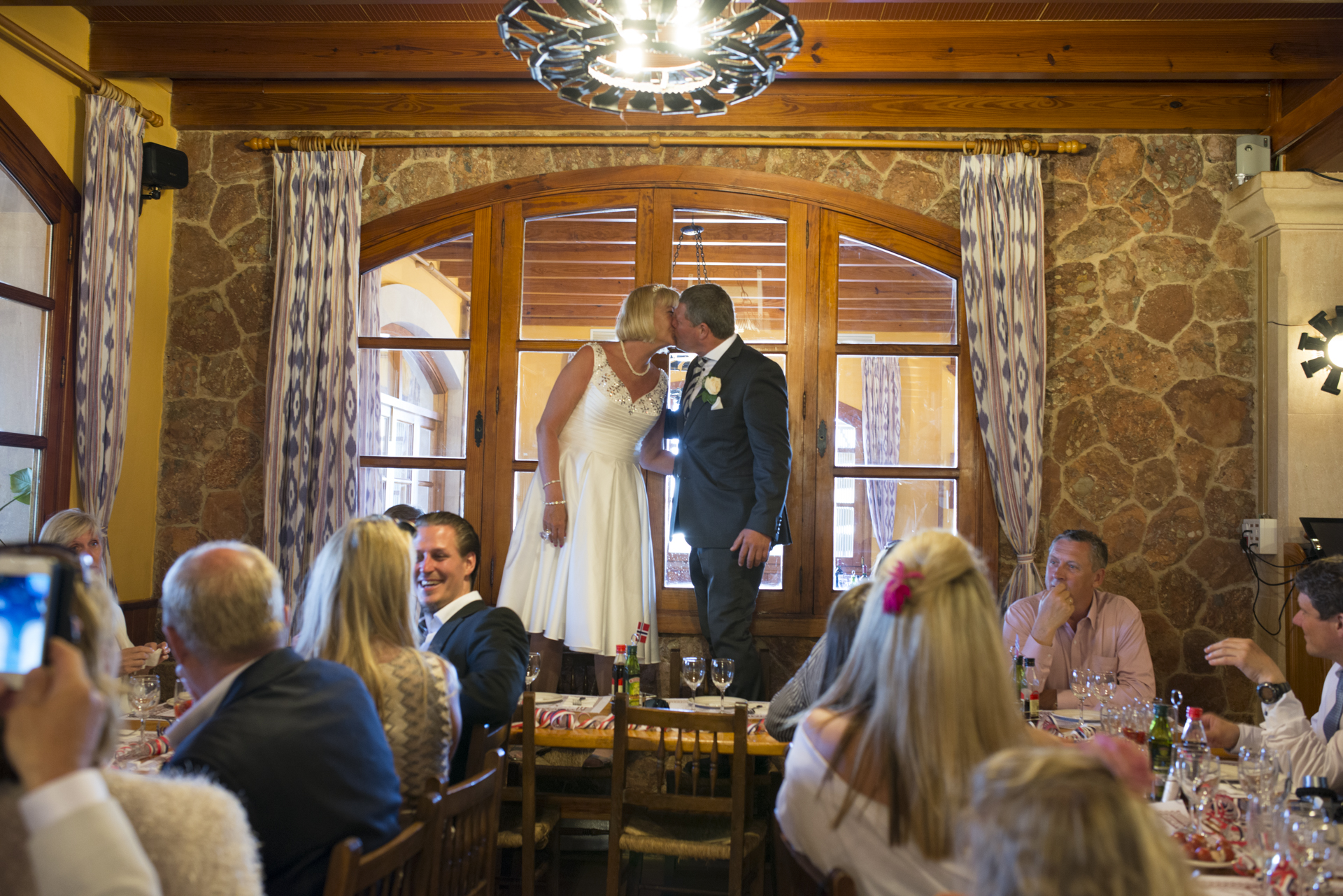 Også Siri og Harald er glade de valgte Sjømannskirken. Etter vielsen i sjømannskirken dro de med hele brudefølget til parets suite for å innta noen flasker champagne. Nå er de på en restaurant utenfor Palma for å innta en bedre middag. Så snart de har satt seg dunkes en teskje mot et glass, deretter to, deretter 28. Tradisjonen tro stiger Harald og Siri opp på stolene sine og kysser hverandre. 10 minutter senere gjentas øvelsen.