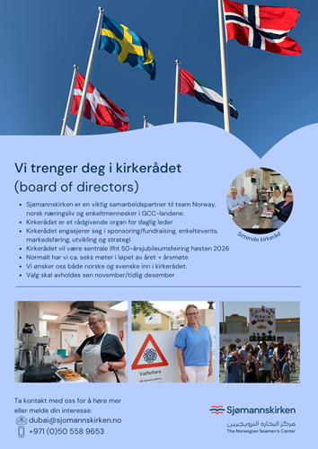 Kirkerådet er daglig leders rådgivende organ, og en viktig støttespiller i drift og utvikling av vår tilstedeværelse i GCC-landene. Vi trenger nye medlemmer til kirkerådet! Meld din interesse her, eller tips oss om noen du mener kan være et positivt tilskudd til rådet!