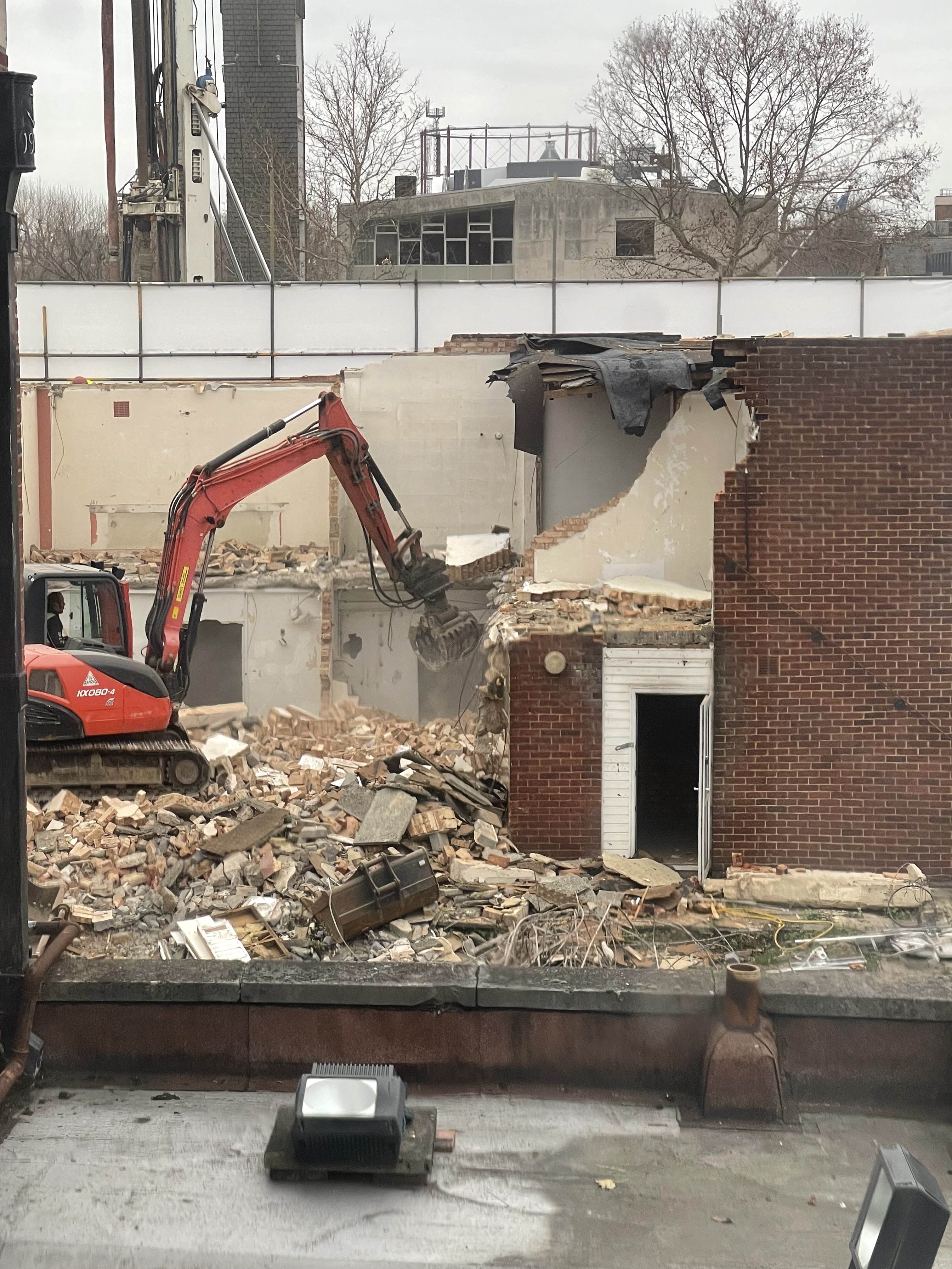 Før byggingen kunne ta til måtte byggeområdet, som er bakhagen til kirken, klargjøres. Kontorfløyen fra 1996 og bolighuset fra 1964 ble revet i løpet av sommeren og høsten 2021.
