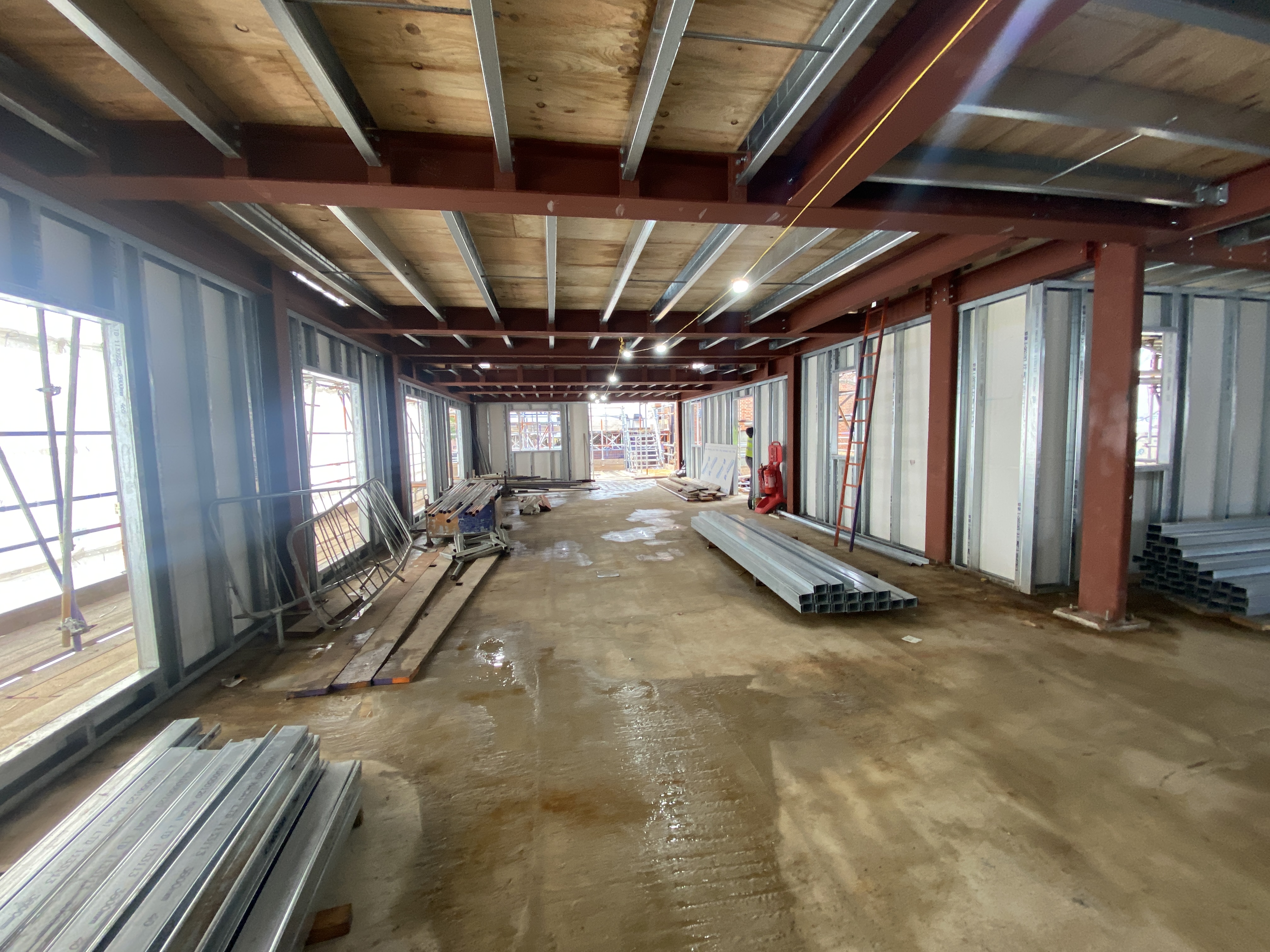 I september ble det monert stillas for byggingen av etasjene med leiligheter. Deretter ble stålrammen for andre til fjerde etasje reist.
