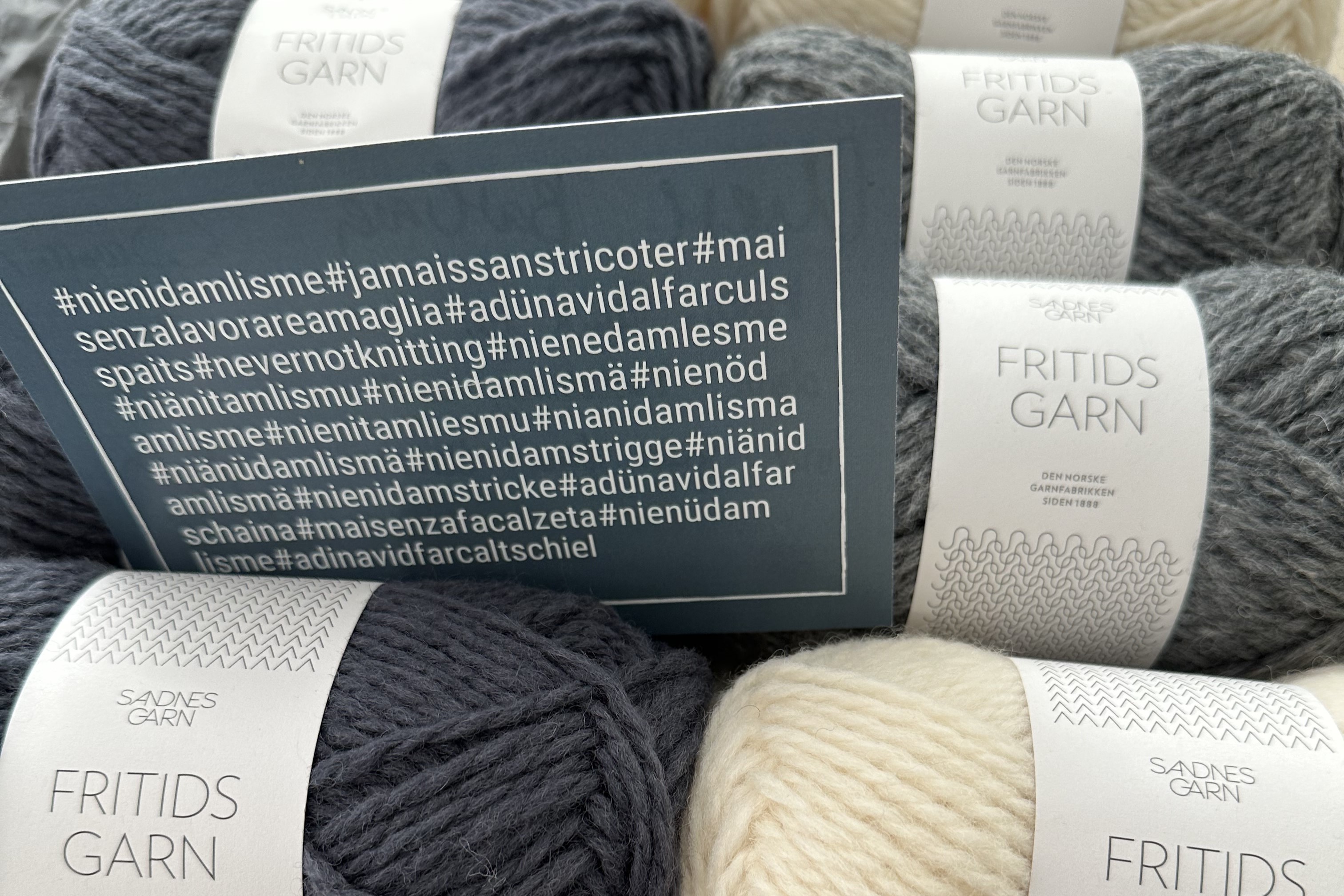 Har du ikke noe eget prosjekt du holder på med, så har kirken et lite lager av Sandnes Garn (Fritidsgarn, Smart og Klompelompe) som du kan bruke til å strikke plagg som kan selges på julemarkedet i 2025.