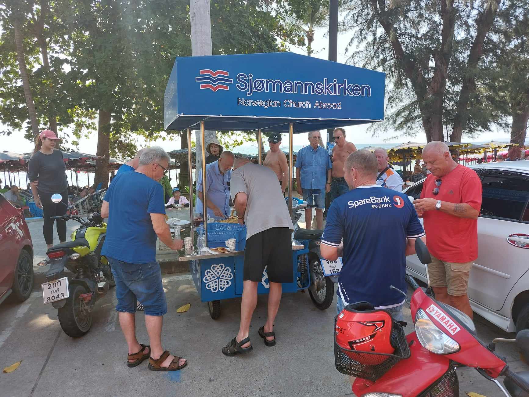 Hver fredag fra rundt klokken 13 til 15, finner dere oss like ovenfor Silver Sand på Jomtien Beach hver fredag . Vi stiller med god kaffe og ferske vafler. Velkommen til til en god prat med oss der, og bli servert kaffe og vafler.