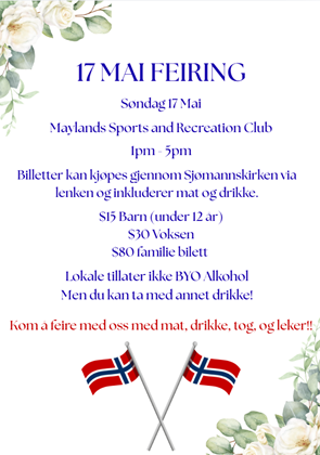 Arrangeres av 17. mai-komiteen i Perth og Sjømannskirken i Australia og New Zealand