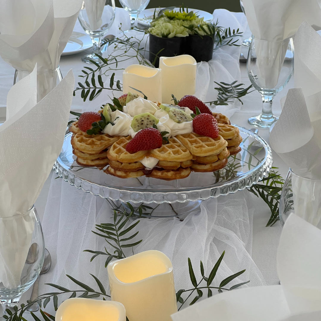 Velger dere å gifte dere ved Sjømannskirken på Gran Canaria, kan dere bestille kaffe og vafler etter vielsen. Velg mellom vafler slik du kjenner vafler hjemme, eller velg bryllupsvafler med smakfull og festlig topping.